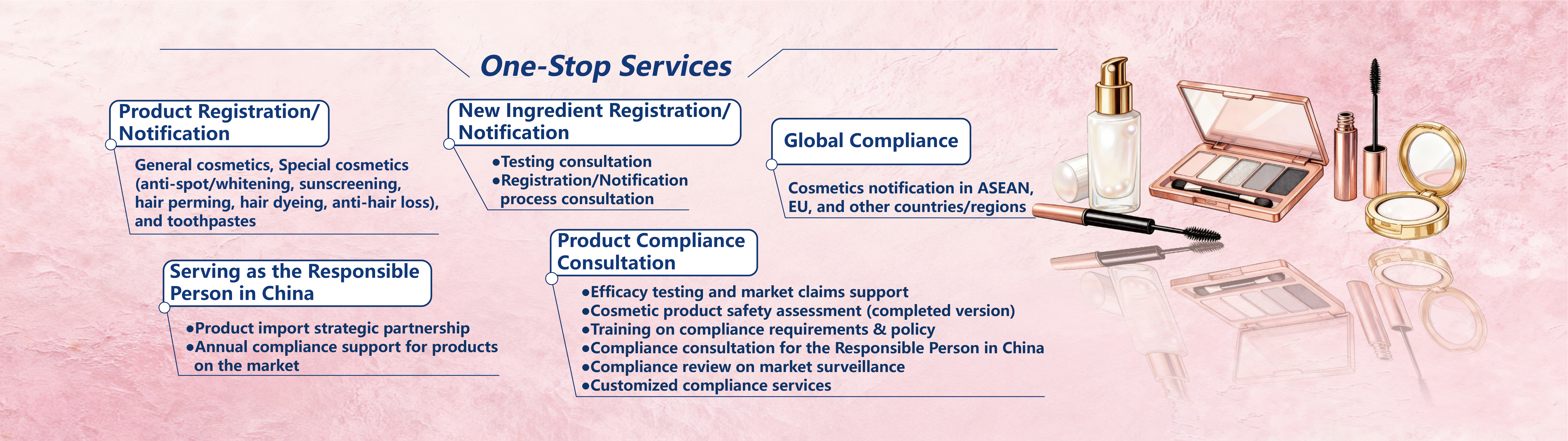 QTCCC was been established in 2000, dedicated to assisting domestic and international cosmetics enterprises in obtaining market access through product registration and filing, and providing compliance assessment and industry regulatory training services.