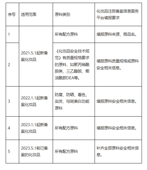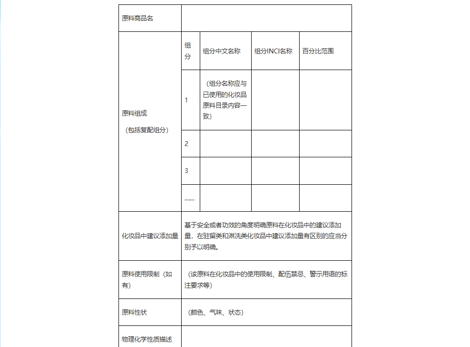 化妆品备案原料信息填报要求