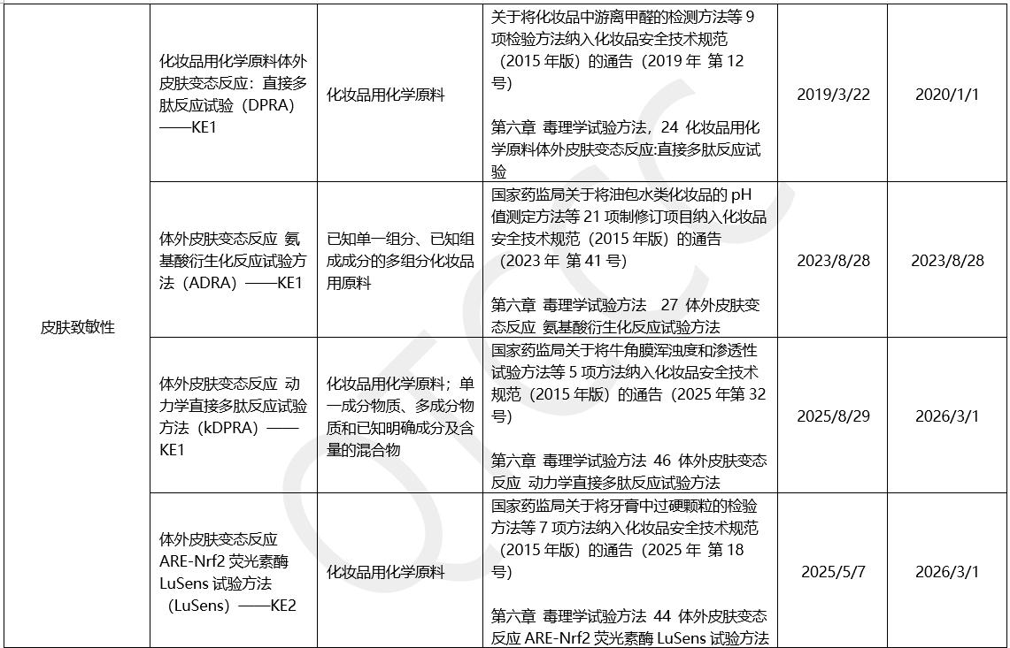 · 皮肤致敏性:已形成多方法体系,涵盖KE1、KE2、KE3关键事件,包括DPRA、ADRA、kDPRA、LuSens、h-CLAT、U-SENS等