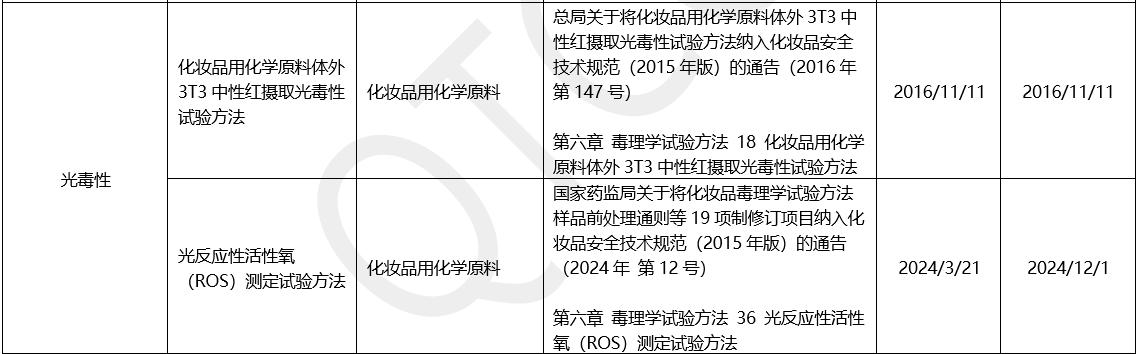 · 光毒性:3T3中性红摄取试验(2016年)、ROS测定试验(2024年)